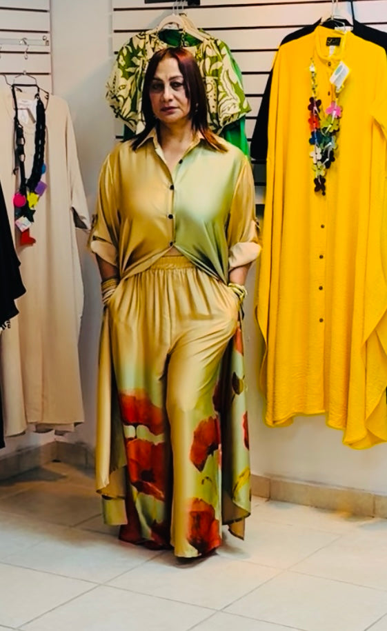 Set de dos piezas Italiano One size con flores pintadas/seda